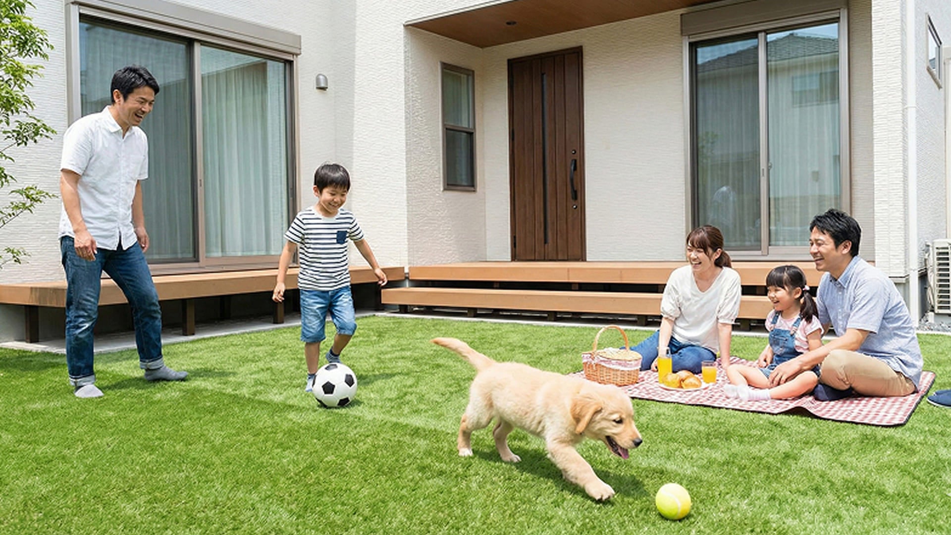 子どもやペット遊んでいる間、親が気にしているのは、ケガをしないか、汚れないか、滑らないか。